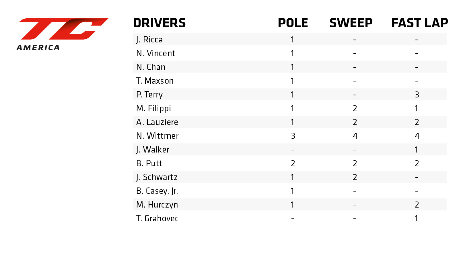 In Touring Car, two drivers solidified their existing positions in the quest; Paul Terry captured a SHYFTER Fast Lap award while Nick Wittmer achieved the three-for-three and locked out the weekend in his class capturing twin pole positions, a pair of SHYFTER Fast Lap awards and a weekend class sweep of podium-topping finishes.
